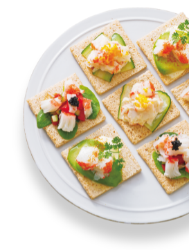 マヨネーズはもちろんバジルやオリーブオイルなどにも相性抜群。キャビアやアボカドをのせたカナッペには、彩りも新鮮なマリンフレッシュを。オードブルに最適です。