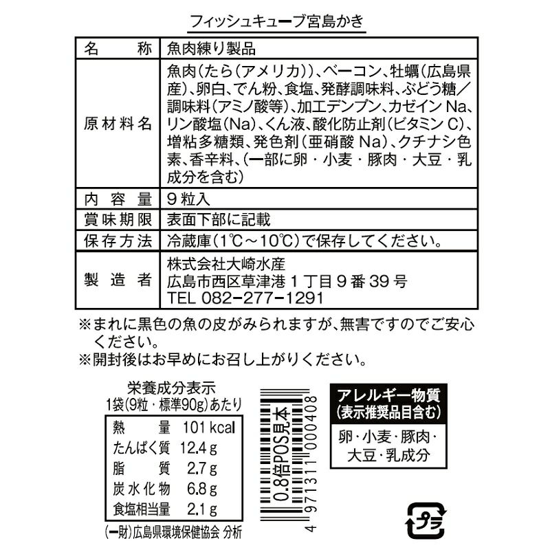 他の画像を見る 広島名産宮島かきの潮の香りとベーコンの旨味をキューブに詰め込みました。 フィッシュキューブ 宮島かき(18袋セット) [販売価格] ¥ 6,998 税込 カートに入れる お気に入りに登録する