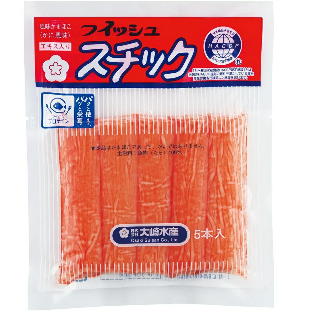 他の画像を見る 元祖棒状かに風味かまぼこ(カニカマ)。他にはマネできないしなやかな繊維と絶妙なほぐれ感。5本タイプの使い切りサイズ。 フィッシュスチック5本入(15袋セット) [販売価格] ¥ 3,402 税込 カートに入れる お気に入りに登録する