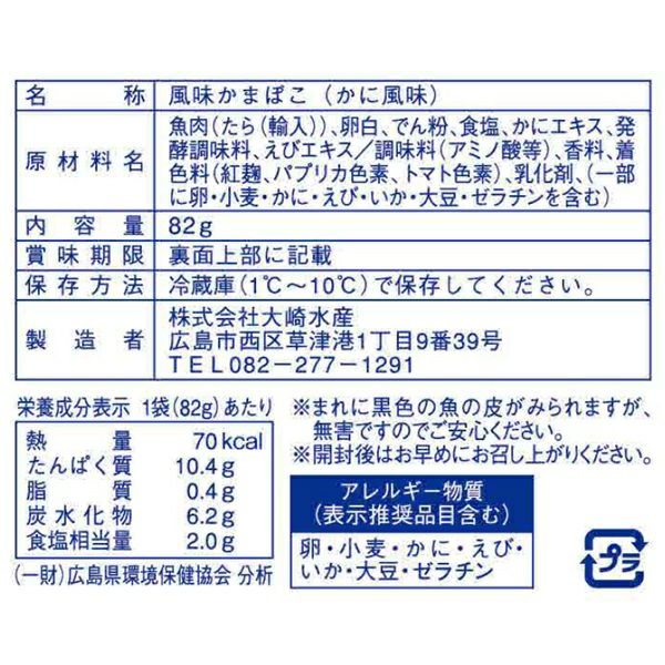 他の画像を見る 元祖棒状かに風味かまぼこ(カニカマ)。他にはマネできないしなやかな繊維と絶妙なほぐれ感。5本タイプの使い切りサイズ。 フィッシュスチック5本入(単品) [販売価格] ¥ 227 税込 カートに入れる お気に入りに登録する