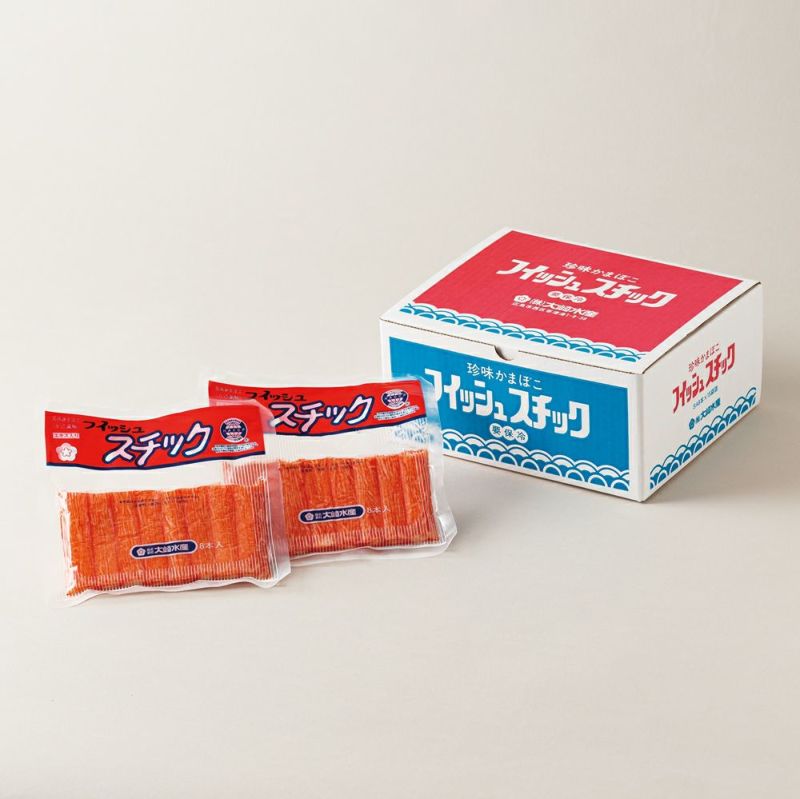 元祖棒状かに風味かまぼこ(カニカマ)。他にはマネできないしなやかな繊維と絶妙なほぐれ感。8本タイプのファミリーサイズ。
