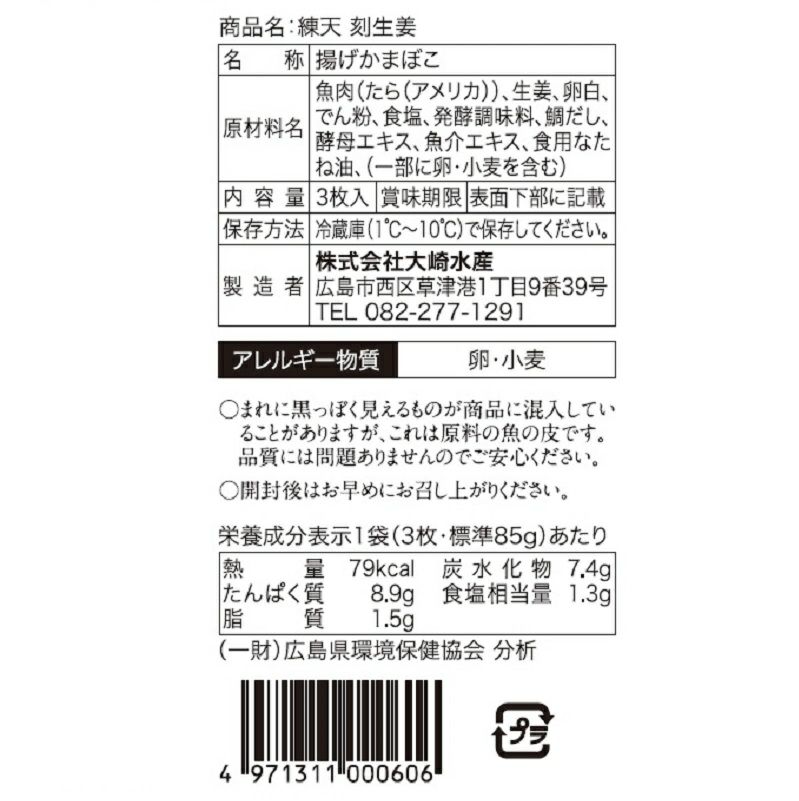 サッパリとした国産の生姜を練りこんだ、爽やかな味わいの揚げかまぼこ。