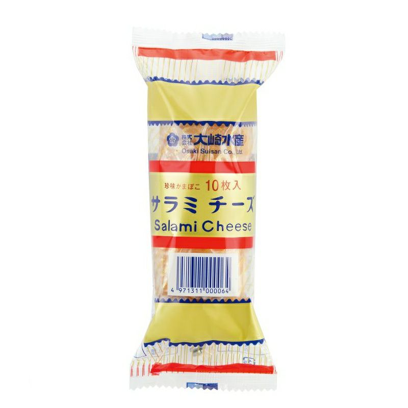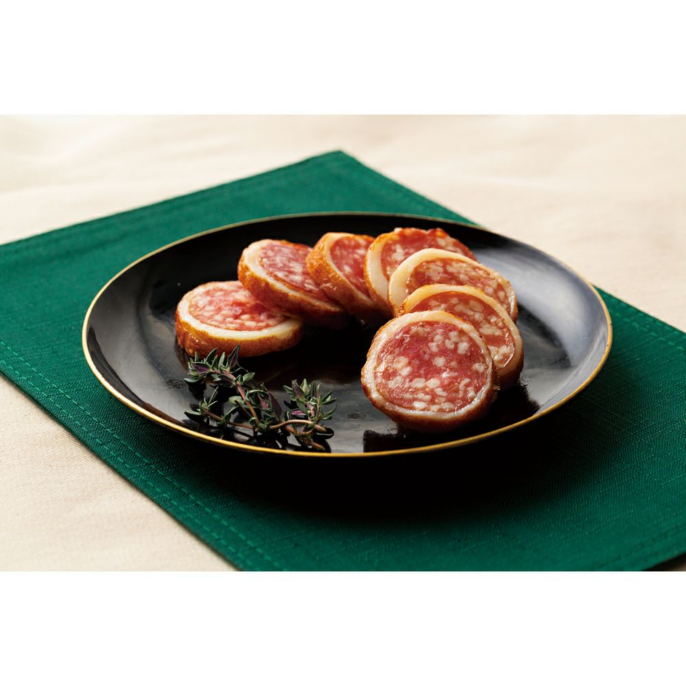 魚肉で包んだチーズの両面をサラミで挟み、油で揚げた洋風オードブル。